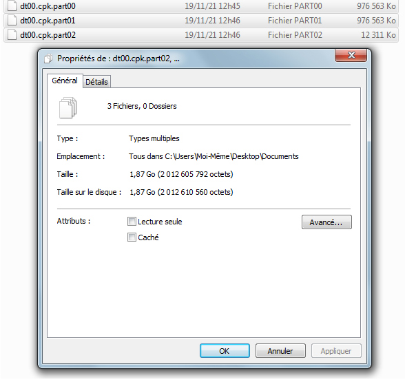 وهكذا على جميع الملفّات المقسّمة، ثمّ بعد ذلك نضعه في مجلّد USRDIR الخاصّ باللِّعبة وفي الآخير يًصبح لدينا الملف الكبير الأصلي الذّي حجمه كبير: