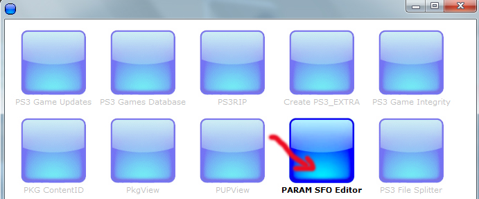 * برنامج PARAM.SFO: هو برنامج غنيّ عن التّعريف يمكن من خلاله تغيير رقم ريجون اللِّعبة و التّعديل على إِسم اللِّعبة و كذلك على التّحديثات و كذلك بعض الأشياء التّي تخصُّ الهاك و كذلك جودة الصُّورة(هذا البرنامج يساعد في حلّ مُشكلة الشّاشة السّوداء).