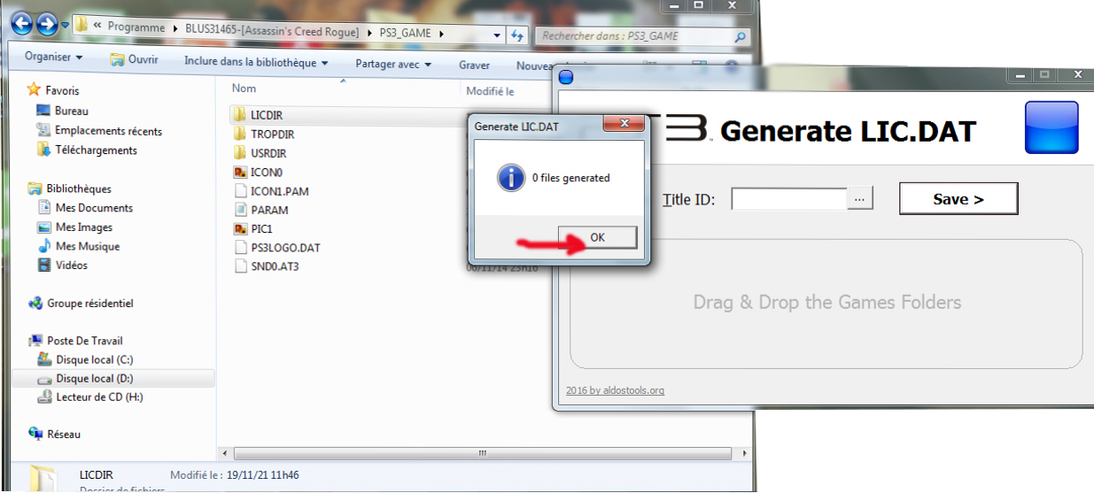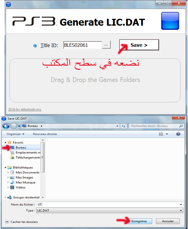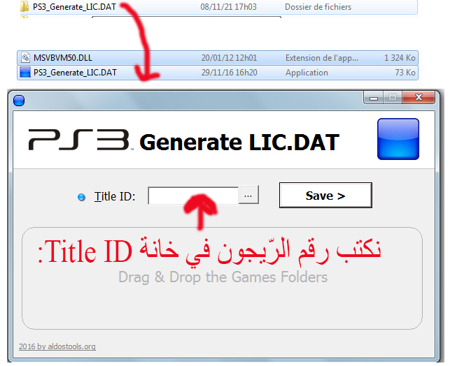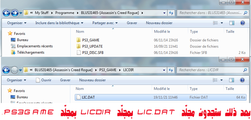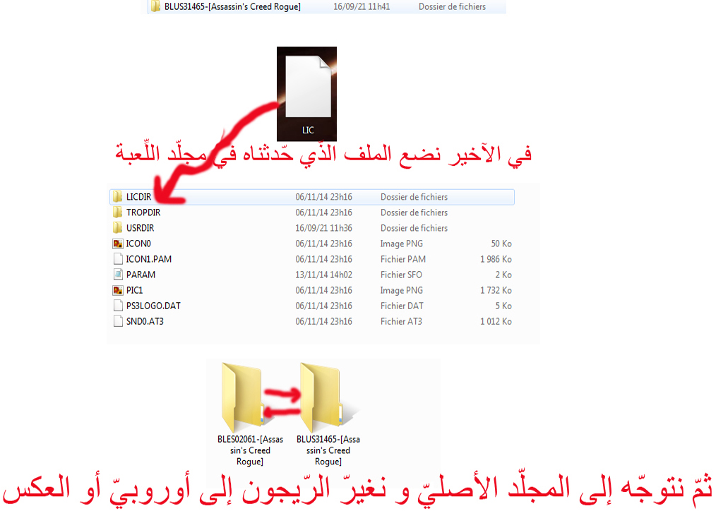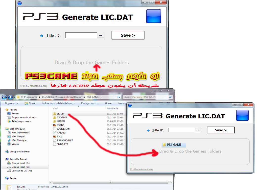 أو يمكنكم سحب مجلّد PS3_GAME ووضعه في البرنامج شريطة أن يكون مجلّد LICDIR فارغاً بحيث لا يوجد فيه مجلّد LIC.DAT: