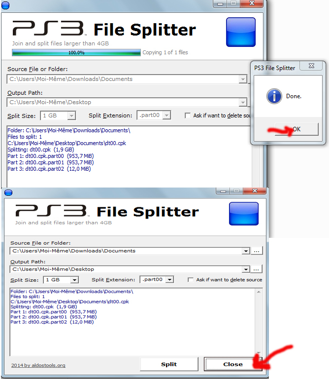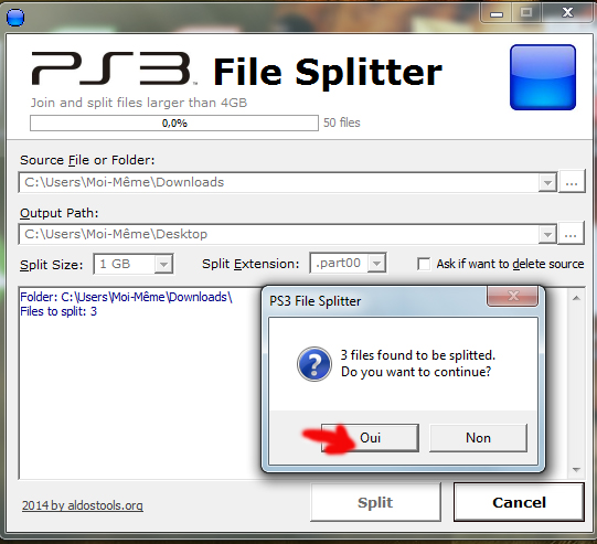 * ملاحظة: هذا البرنامج لا يقوم بتقسيم ملف "PS3UPDAT.PUP" لأنّ حجمه صغير، لذلك فالبرنامج يقوم فقط بتقسيم الملّفات الكبيرة إلى 1GB.