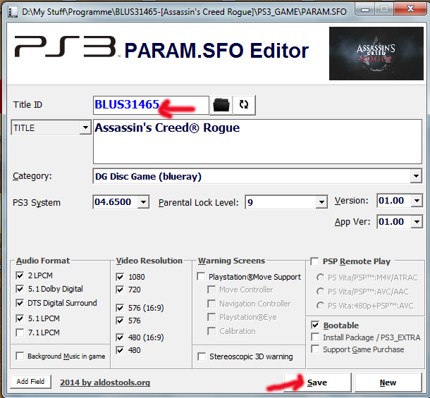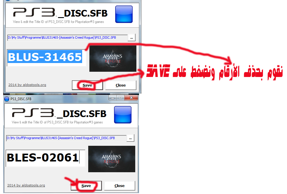 - مثال: تحويل لعبة "Assassin's Creed Rogue" النُّسخة الأمريكيّة إلى الأوروبيّة كما في الصُّور التاليّة:
