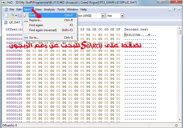 بعد ذلك نقوم بتنزيل برنامج "Hex Editor" وتتبيثه على الحاسوب لكيّ نقوم بآخر خُطوة وهيّ تغيير رقم الرّيجون إلى أوروبيّ أو العكس ويتعلّق الأمر بملف"LIC.DAT" الذّي يوجد بمجلّد"LICDIR" بداخل اللِّعبة: