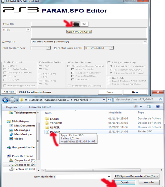 ثمّ نتوجّه إلى مجلّد اللِّعبة و نختار ملف PARAM.SFO و نقوم بتغيير الرّيجون فقط لا غير: