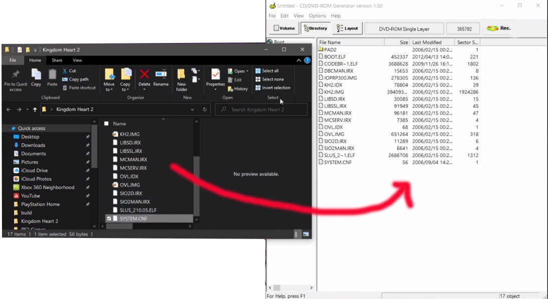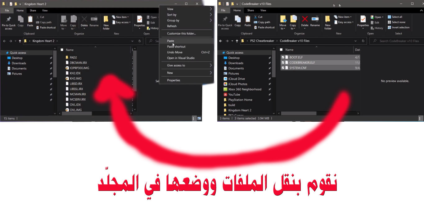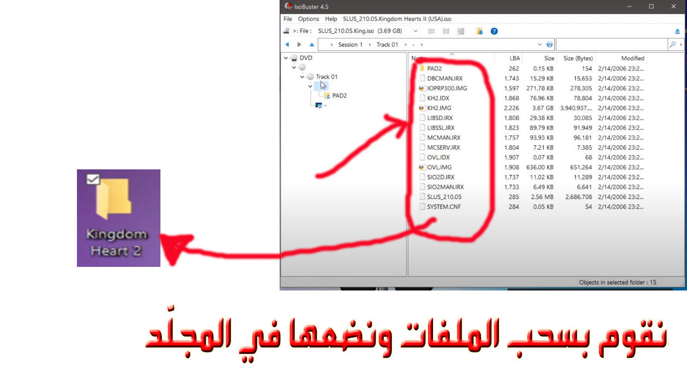 - بعد ذلك نقوم بسحب الملفّات من البرنامج ونضعها في مجلّد "Kingdom Heart 2":