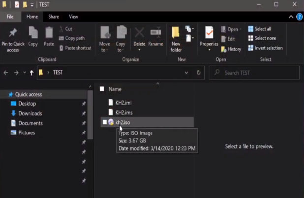 - بعد ذلك ستجد بداخل مجلّد"TEST" اللِّعبة بصيغة "ISO" تحمل إِسم "kh2.iso":