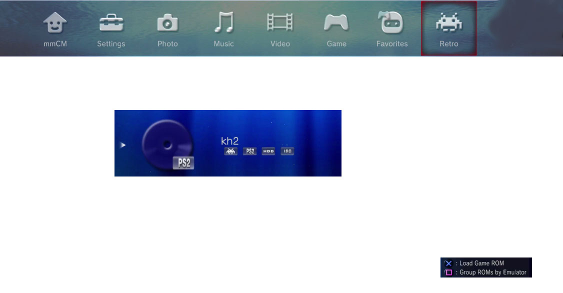 - بعد ذلك نتوجّه إلى جهاز PS3 المهكّر ثمّ نضغط على اللِّعبة التّي توجد بالملتمان و بالضّبط في "Retro":
