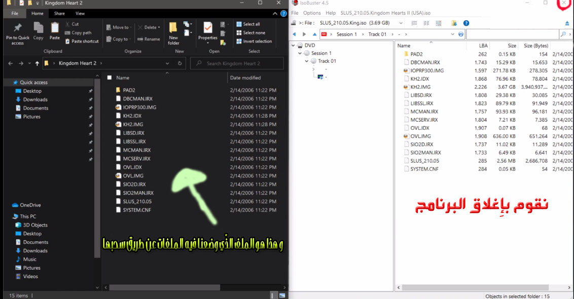 - بعد الإِنتهاء من نقل الملفّات إلى المجلّد نقوم بإِغلاق برنامج "ISOBuster".
