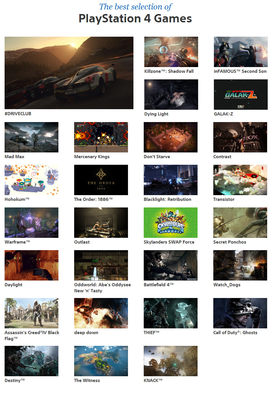قامت سوني بوضع صورة تحتوي على جميع العاب PS4 المعلنة و التي سوف تصدر للجهاز وقت اطلاقه او بعده بقليل