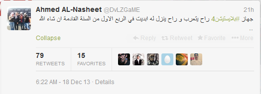 أحمد النشيط اعلن فتويتر ان موعد تعريب PS4 بيكون فالربع الاول من السنه الجديده ..