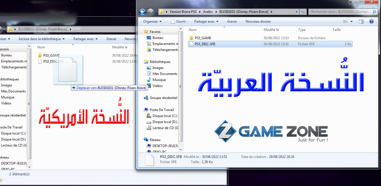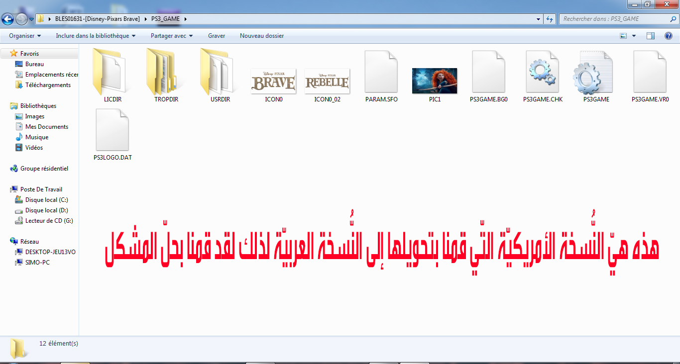 و في الآخير تصبح لدينا النُّسخة جاهزة و نقوم بإِرسالها إلى PS3 و بالضّبط في الهارديسك الدّاخليّ بمجلّد GAMES: